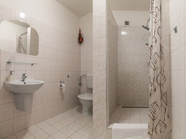 - Koupelna s WC (apartmán - koupelna s vanou, ostatní pokoje - sprchový kout)